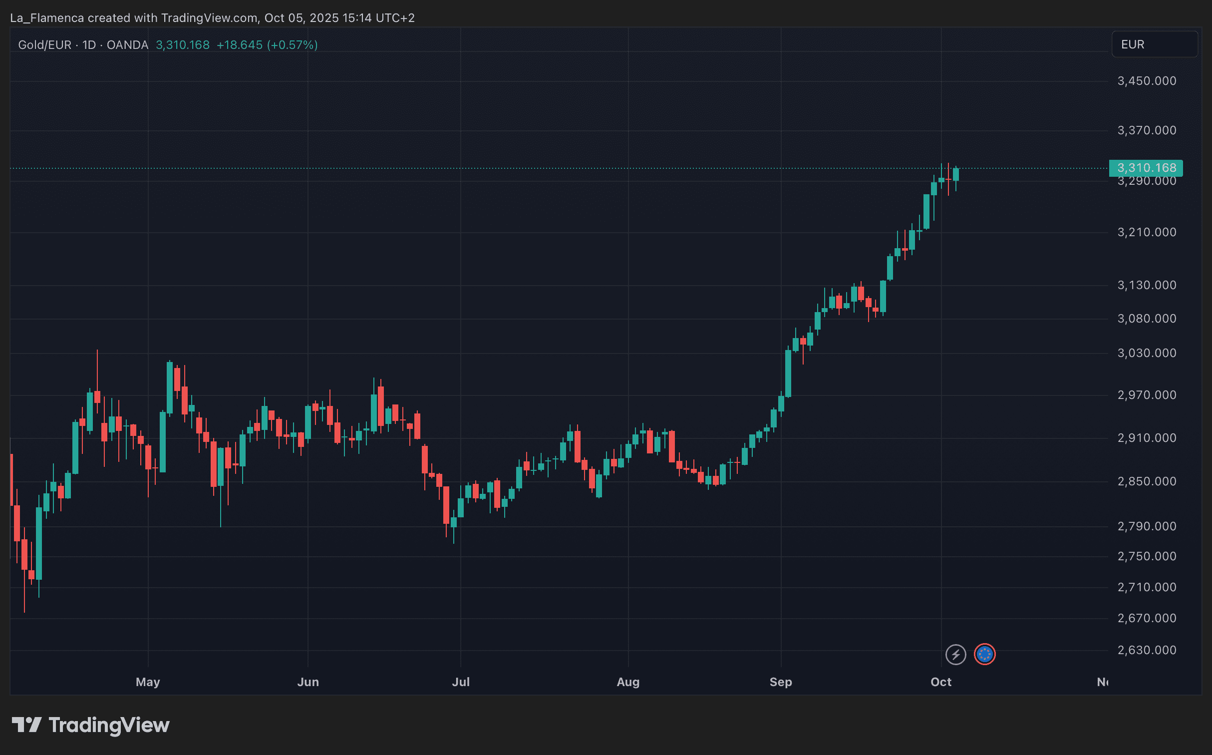 Goud is sinds begin 2025 al met meer dan 30 procent in waarde gestegen. In de afgelopen 30 dagen is de stijging bijna 9 procent en in de afgelopen zeven dagen bijna 4 procent.