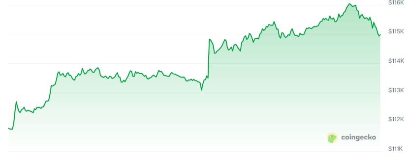 Bitcoin vond kort voor het weekend steun rond de 108.000 dollar en is sindsdien gestaag opgelopen. Vanochtend tikte de koers zelfs even de 116.000 dollar aan, de hoogste stand in ruim twee weken.