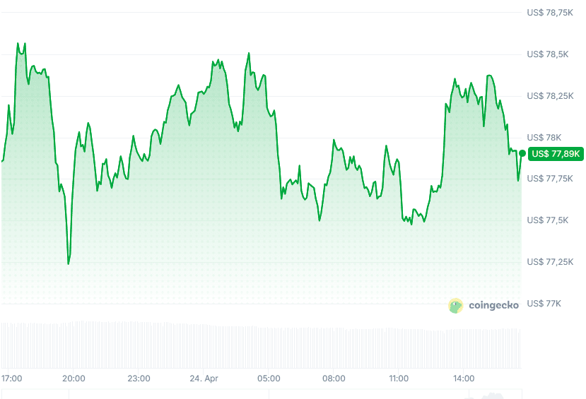 Bitcoin (BTC) toont vandaag stabiliteit met een lichte stijging van ongeveer 0,1 procent naar een prijs van 77.908 dollar. In euro’s komt dit neer op een koers van 66.535, een min van 0,1 procent in de laatste 24 uur.