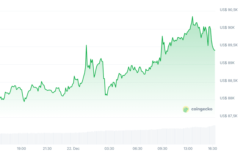 De cryptomarkt laat vandaag een opvallende beweging zien, waarbij bitcoin opnieuw de symbolische grens van 90.000 dollar opzoekt. Terwijl de markt in totaal met 2 procent groeit, blijft de koers van de grootste digitale munt spannend schommelen net onder dit psychologisch belangrijke niveau.
