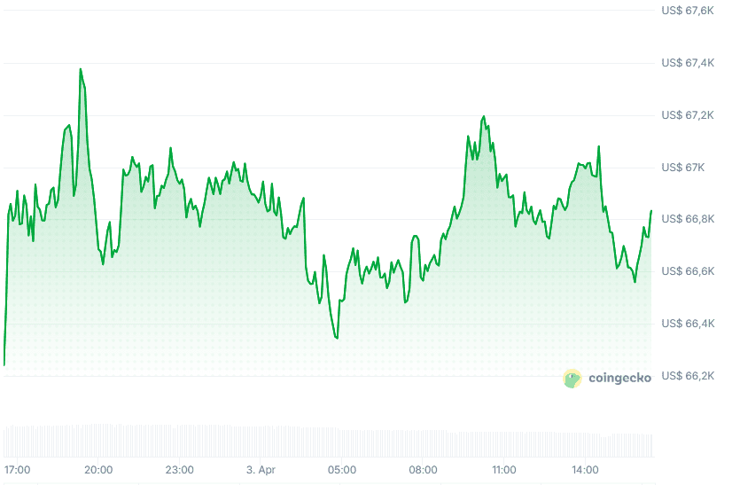 Bitcoin beweegt vandaag nauwelijks en handelt rond de 66.934 dollar, een stijging van 0,1 procent in de laatste 24 uur. In euro’s komt de prijs uit op ongeveer 57.908, een plus van 0,6 procent. De totale waarde van de cryptomarkt is met een stijging van slechts 0,2 procent ook vrijwel onveranderd gebleven en staat op circa 2,38 biljoen dollar.