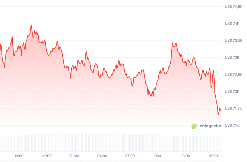 Na een dag van forse koerswinsten kleurt de cryptomarkt vandaag rood. De totale marktwaarde daalde met 2,6 procent, waarbij vooral de opening van de Amerikaanse beurzen een stempel drukte op het koersverloop. Terwijl bitcoin eerder vandaag nog boven de 72.000 dollar noteerde, is deze in de loop van de middag wat ingezakt.