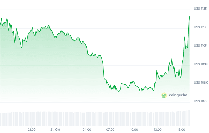 Bitcoin stond tot 15.00 uur fors in de min, maar de koers is sindsdien snel gestegen. In het afgelopen uur is deze met 2,4 procent gestegen. Hierdoor staat de koers momenteel op 111.000 dollar, terwijl deze enkele uren geleden nog onder de 108.000 dollar stond.
