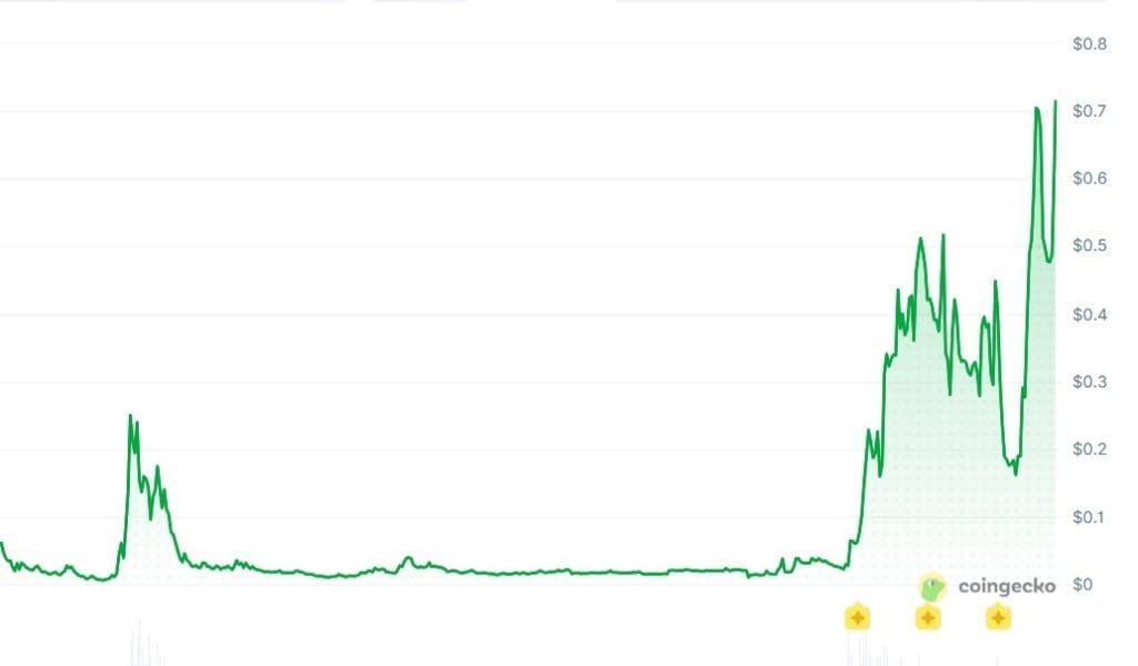 Terwijl de grote munten daalden, explodeerde PIPPIN. De memecoin bereikte op 14 februari een nieuwe all-time high rond de 0,76 dollar en tikte een marktkapitalisatie van ongeveer 715 miljoen dollar aan.
