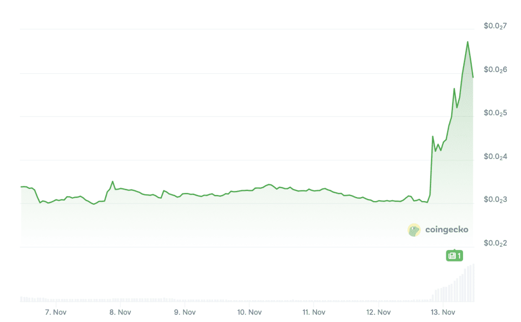 In 24 uur tijd steeg de koers van Telcoin met meer dan 120 procent, van 0,003021 dollar naar 0,006718 dollar. Op het moment van schrijven is de koers weer enigszins teruggevallen, naar 0,006 dollar. De marktkapitalisatie bedraagt nu ongeveer 490 miljoen euro.