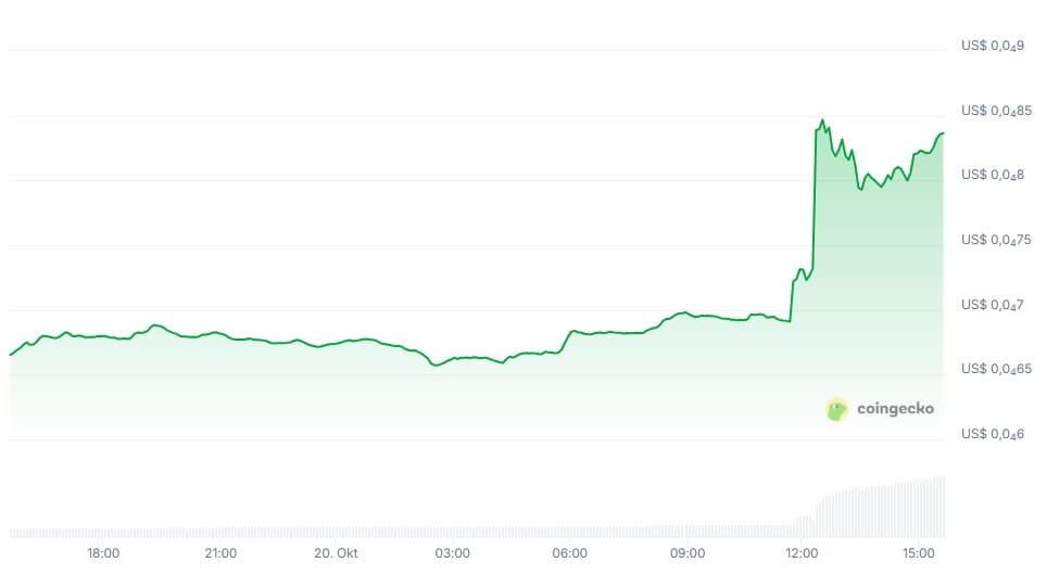 Op het moment van schrijven noteert de FLOKI-token een waarde van 0,00007054 euro. Dit is een stijging van 25 procent vergeleken met 24 uur geleden.