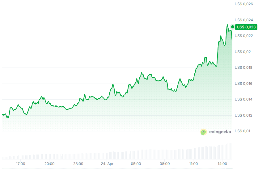De koers van Katana is vandaag gestegen van 0,011 naar 0,023 dollar. De munt is relatief nieuw en werd pas eind maart gelanceerd. Kort na de piek zakte de koers weer een beetje in en staat deze momenteel op 0,021 dollar.