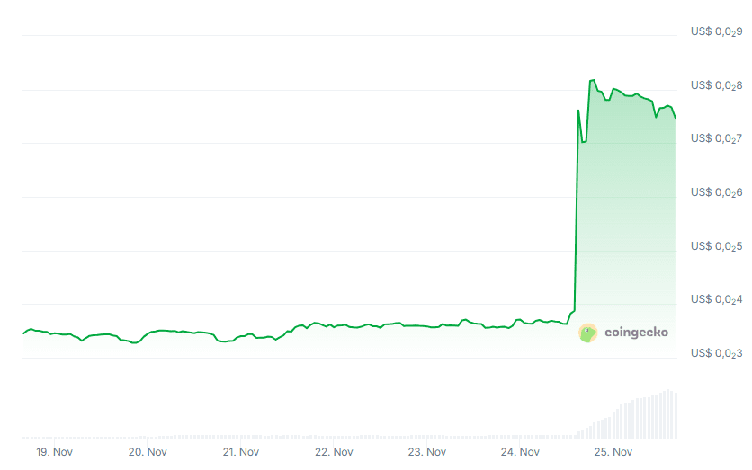 In een post op X liet Gems Launchpad weten dat Enlivex, een op de NASDAQ genoteerd bedrijf, 212 miljoen dollar investeert in Rain als strategische reserve. Rain Protocol werd eerder dit jaar gelanceerd via het Gems Launchpad.