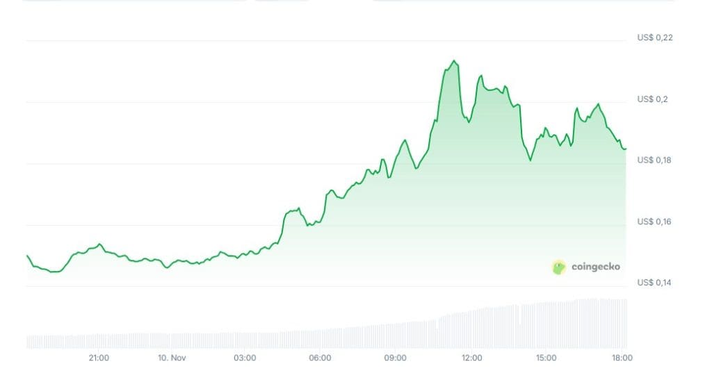Toch is er een risico, want op 12 november worden er 127 miljoen nieuwe tokens vrijgegeven, ter waarde van ongeveer 20,8 miljoen euro. Deze kunnen voor flink wat verkoopdruk zorgen. Blijft de koers na die datum boven het 50-daags gemiddelde van 0,11 euro, dan kan de positieve trend aanhouden.