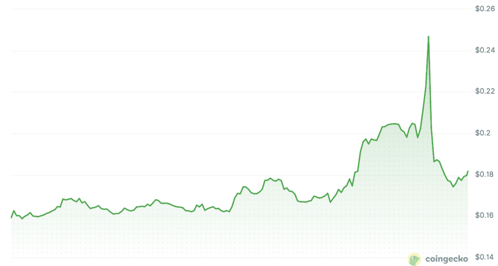 Van de koersstijging bleef niets over. De koers van Fartcoin is weer teruggezakt en staat op het moment van schrijven op 0,181 dollar.