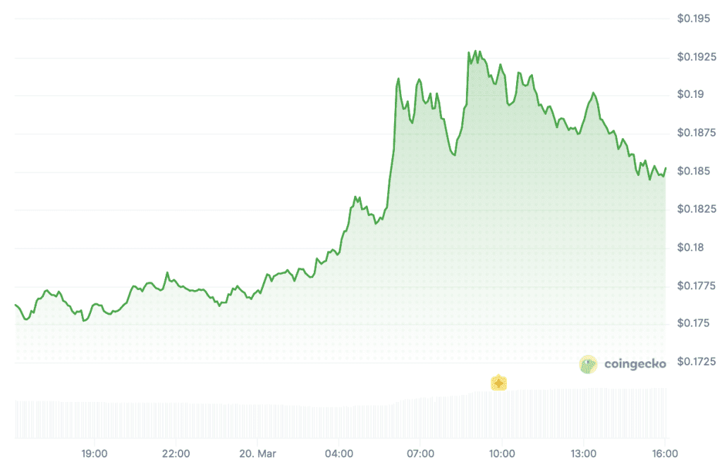 In de afgelopen 24 uur leefde de cryptomunt weer op. De koers van Pi Network steeg met ruim 10 procent naar 0,192 dollar. Inmiddels is de koers weer iets teruggezakt naar 0,185 dollar.