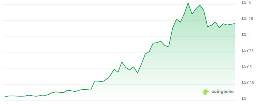 Sinds het record is de munt weer iets gezakt. Op het moment van schrijven komt PENGUIN uit op 0,112 dollar (0,095 euro). Dat is een daling van zo’n 30 procent, maar de koers staat daarmee alsnog ongeveer 150 procent in de plus vandaag.