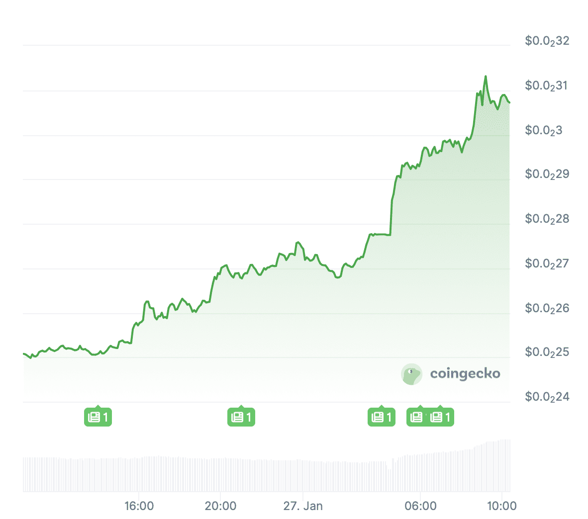 Op het moment van schrijven is de munt ruim 0,003 dollar waard, wat maar liefst 66 procent meer is dan een maand geleden.