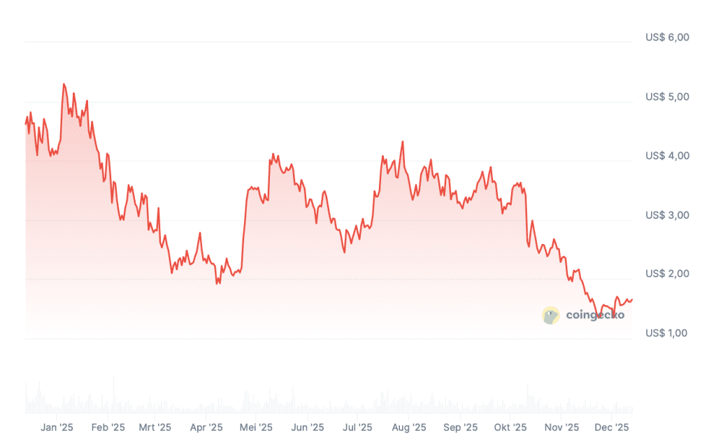 Inmiddels is de koers enigszins uit het dal geklommen en staat deze iets hoger op 1,66 dollar. Analisten zijn hoopvol over de vooruitzichten. De afgelopen paar weken waren erg volatiel, maar crypto-analist Daan Crypto Trades wijst op belangrijke ontwikkeling op de koersgrafiek:
