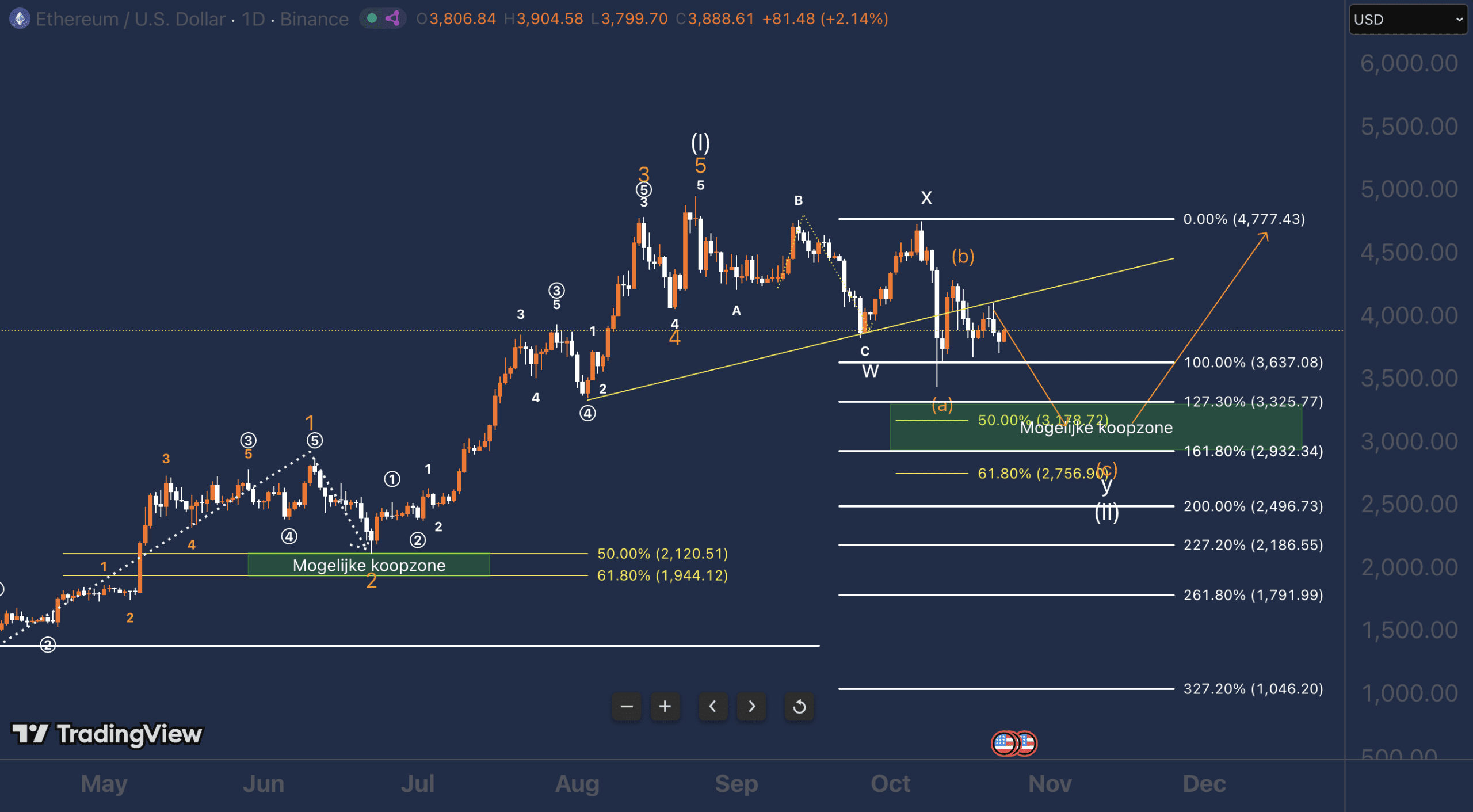 Pas wanneer die signalen duidelijk aanwezig zijn, kan een nieuwe opwaartse fase richting 4.400 dollar tot 4.790 dollar beginnen. Daalt de koers daarentegen onder 2.750 dollar, dan vervalt het positieve scenario en komt een lagere zone rond 2.100 dollar in beeld.
