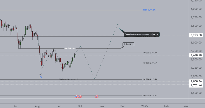 De belangrijkste zones om in de gaten te houden zijn $2.800 aan de bovenkant en $1.915 aan de onderkant. Een doorbraak boven de $2.800 kan verdere stijging richting $3.223 veroorzaken, wat een stijging van ongeveer 30% zou zijn. Maar zolang de $2.800 niet wordt gebroken, blijft voorzichtigheid geboden. Aan de onderkant biedt $1.915 sterke steun, en een breuk hieronder zou kunnen wijzen op verdere daling richting $1.762.