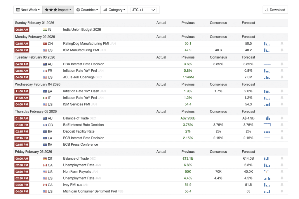 Wat de macro-economische kalender betreft staan er voor bitcoin weer een hoop belangrijke zaken op het programma volgende week. Te beginnen op maandag met de ISM Manufacturing PMI, een belangrijke gezondheidsmeter voor de Amerikaanse industrie.