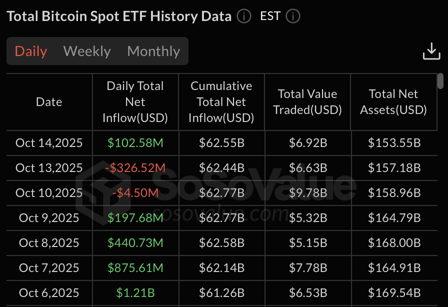 Nadat er maandag nog 280 miljoen euro (326,52 miljoen dollar) uit de bitcoin-beursfondsen vloeide, noteerden de beursfondsen dinsdag een positieve instroom van 88 miljoen euro (102,58 miljoen dollar). Dat blijkt uit data van SoSoValue.