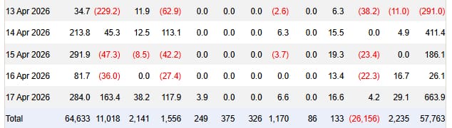 Opvallend is dat de week nog begon met een uitstroom van 291 miljoen dollar, maar dat het beeld daarna volledig kantelde. Vooral vrijdag was een sterke dag, met 663 miljoen dollar aan nieuw kapitaal.