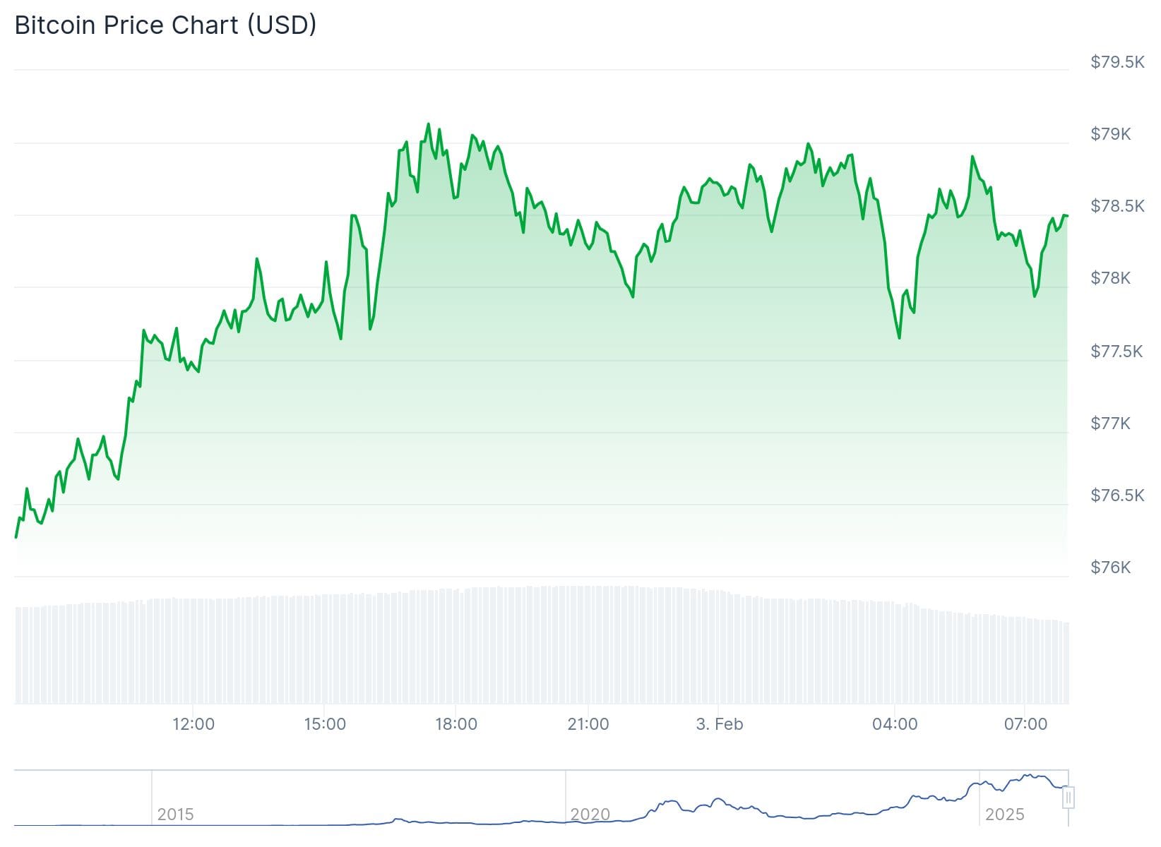 De bitcoin lijkt zich nu boven de 78.000 dollar vast te houden en het eerste belangrijke niveau om terug te winnen is 80.500 dollar. Dat was in november de bodem, die dit weekend niet langer standhield.
