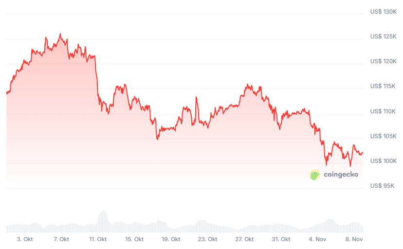 Op het moment van schrijven beweegt bitcoin net onder het prijsniveau van 102.000 dollar. De markt houdt de koers al enige tijd angstvallig in de gaten en hoopt dat de psychologische grens van 100.000 dollar behouden blijft.