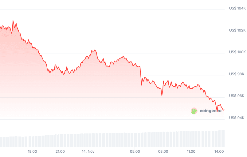 Bitcoin kampt momenteel met stevige verkoopdruk en de koers is inmiddels gekelderd tot onder de 95.000 dollar. Ondertussen kampt de markt met dunne liquiditeit. Sinds de piek van 107.500 dollar van eerder deze week is BTC gestaag gedaald en vormt het nu een reeks lagere toppen. Dat betekent dat iedere poging tot herstel tot nu toe meteen wordt teruggedrongen, en traders zien dit als een duidelijk signaal dat verkopers de controle behouden. Een marktanalyse van IT Tech zet uiteen welke prijzen je in de gaten moet houden.