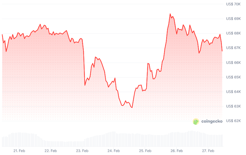 Ook sterke kwartaalcijfers van chipmaker Nvidia hielpen het sentiment. Daardoor wist bitcoin woensdagavond zelfs bijna de 70.000 dollar te bereiken.