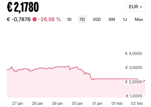En zilver spande helemaal de troon met een 37 procent daling in één dag. Ter vergelijking: bitcoin deed 118 dagen over een 37 procent daling. De vergelijking onderstreept een belangrijk punt: volatiliteit is niet exclusief voor crypto.