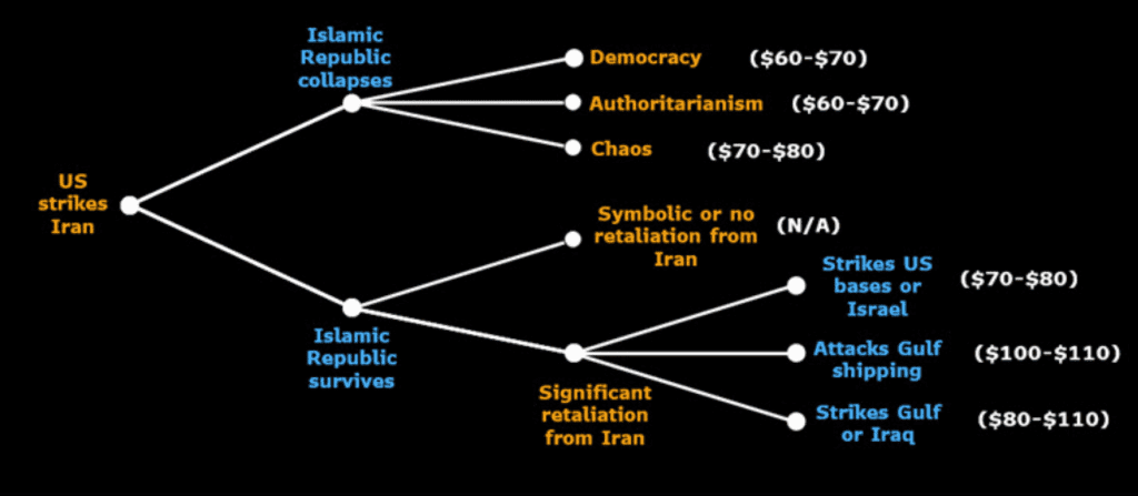 De spanningen rond Iran zorgden voor een scherpe stijging van de olieprijs en zetten de bitcoin koers kortstondig onder druk.