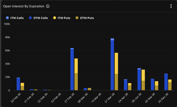 De meeste handel in bitcoin opties vindt plaats op Deribit. De cijfers van dit platform laten daarom goed zien hoe handelaren zich rond zo’n expiratie positioneren.