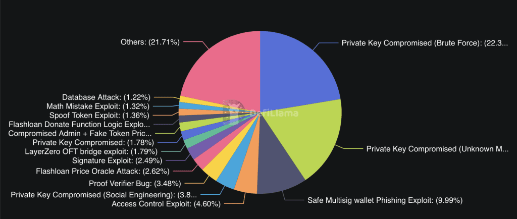 Bij ruim de helft van alle hacks wisten hackers de geheime toegangssleutels van cryptoportefeuilles te bemachtigen.