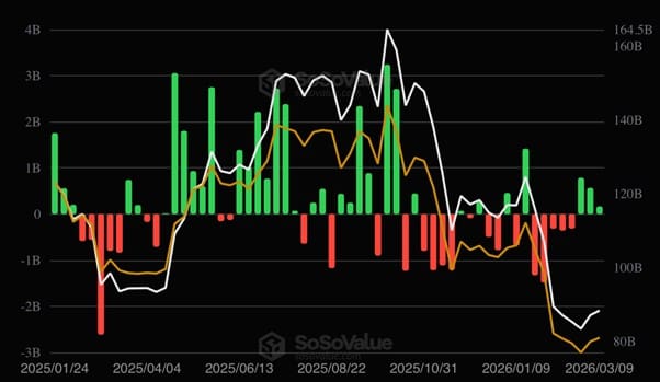 Gegevens van Sosovalue laten zien dat er in de afgelopen twee weken weer geld binnen is gekomen bij de bitcoin-ETF’s, nadat er vijf weken lang uitstroom geregistreerd was. Ook gisteren is er geld geïnvesteerd, namelijk 144,5 miljoen euro. De cijfers suggereren hernieuwde interesse en vertrouwen in de bitcoin-koers op de beurs.