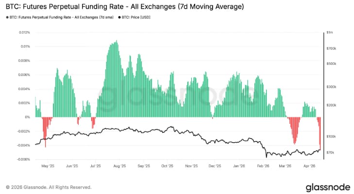 - De ‘funding rate’ is gedaald naar het laagste punt sinds 2023, wat wijst op een recordaantal posities die inzetten op een daling