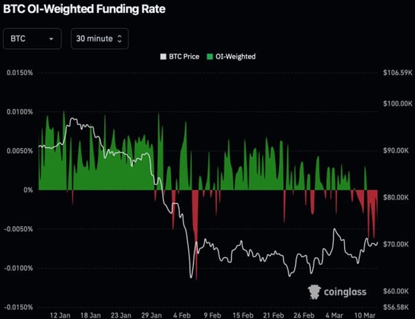 Op de futures-markt betalen handelaren een bepaalde vergoeding, en wanneer deze negatief is, zoals nu, betekent dit dat er meer wordt ingezet op daling dan op stijging. Sinds 10 maart is de vergoeding al negatief.