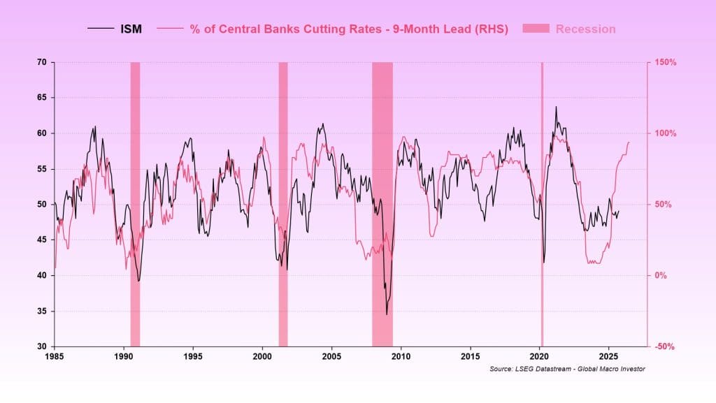 Deze indicator geeft aan hoe het rentebeleid zich wereldwijd ontwikkelt. Een verlaging van de rente maakt lenen goedkoper en stimuleert daardoor de economie.