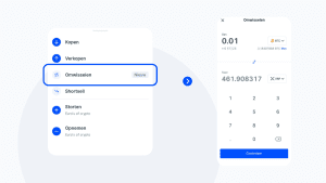 Met Convert wordt dit proces samengevoegd. Je kiest welke crypto je wilt omwisselen en welke munt je wilt ontvangen. Vervolgens zie je direct een prijsvoorstel, inclusief wisselkoers en kosten. Ga je akkoord, dan wordt de conversie meteen uitgevoerd.