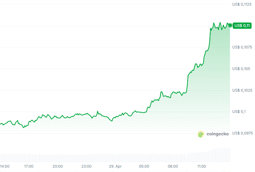 De koers van dogecoin is vandaag hard gestegen. De munt staat op dit moment op 0,109 dollar, wat neerkomt op een stijging van bijna 12 procent.