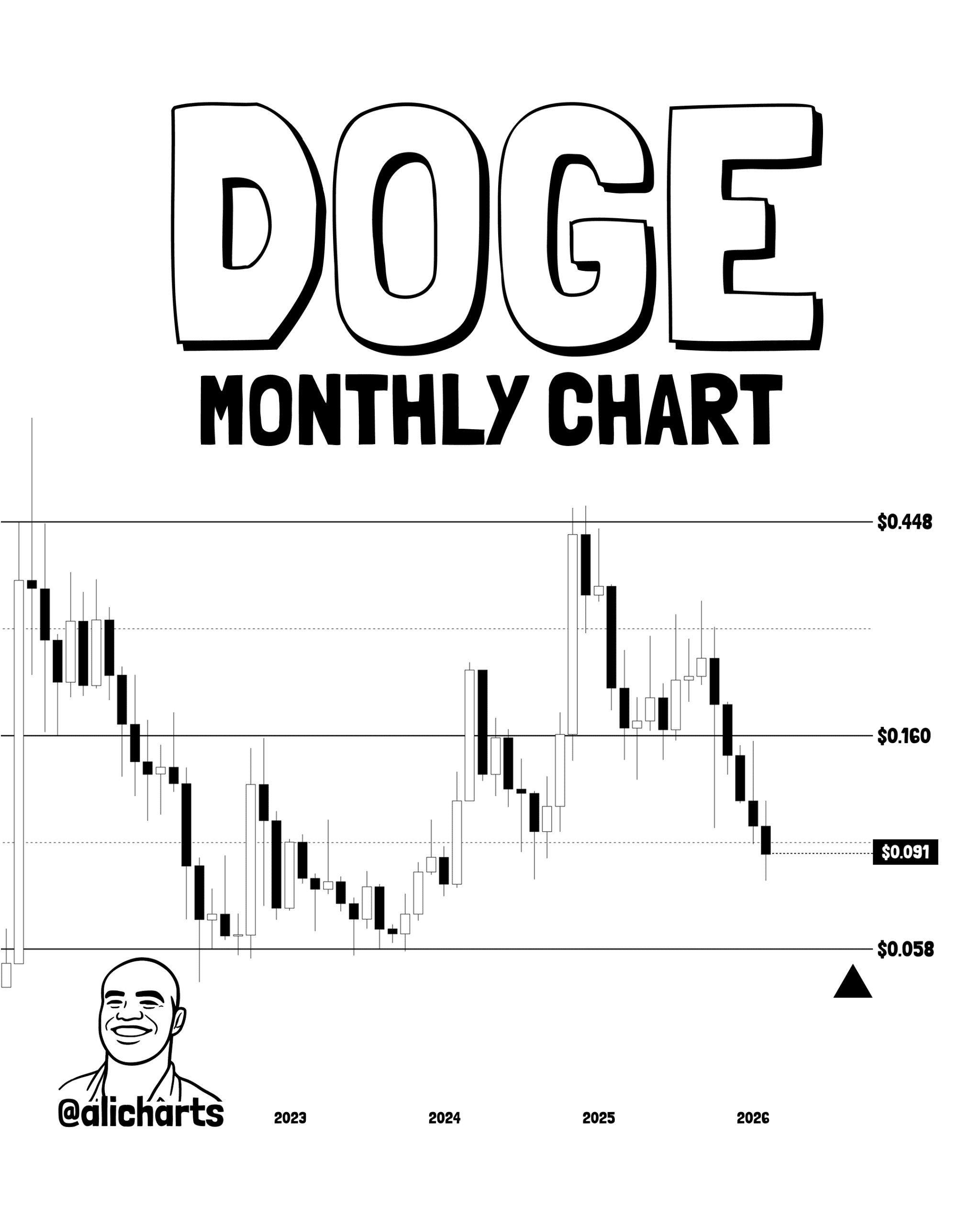 Hij verwacht pas een mogelijke ommekeer als de koers van dogecoin het prijsniveau van 0,058 dollar aantikt, omdat dit een belangrijk ondersteuningsniveau is op de maandelijkse koesgrafiek.