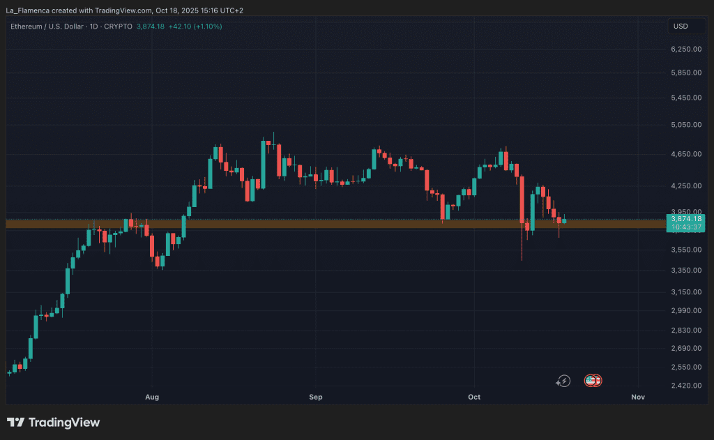 Vergeleken met een maand geleden is ethereum momenteel ruim 15 procent goedkoper. In deze week is ethereum ongeveer 7 procent gedaald. Toch lijkt de koers nu steun te hebben gevonden bij 3.800 dollar, een belangrijk prijsniveau. In de afgelopen 24 uur is ethereum namelijk 3 procent gestegen tot 3.874 dollar op het moment van schrijven.