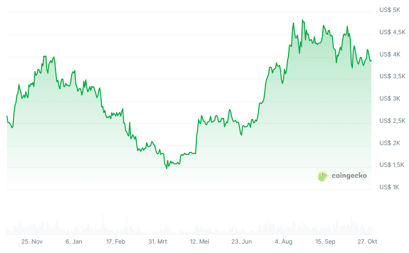 Na de vorige upgrade, Pectra, begin mei steeg ethereum flink in koers van pakweg 1.600 naar meer dan 4.000 euro.