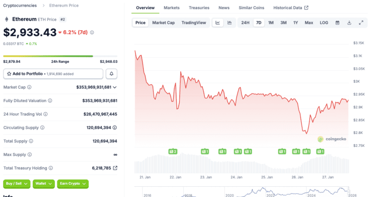 Ethereum dook een week geleden, toen de fondsen flinke uitstroom lieten zien, onder de cruciale grens van 3.000 dollar.