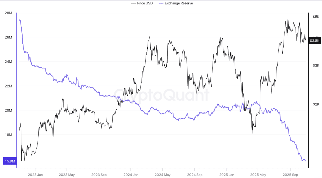 Ondanks deze zorg daalt de hoeveelheid ethereum op handelsbeurzen nog steeds. Volgens data van CryptoQuant circuleert er op dit moment zo’n 15,8 miljoen ethereum op handelsbeurzen – bijna een kwart minder dan in juni. Dat geeft aan dat er minder ethereum naar handelsbeurzen wordt verstuurd voor eventuele verkopen, dan dat er wordt opgenomen naar eigen wallets.