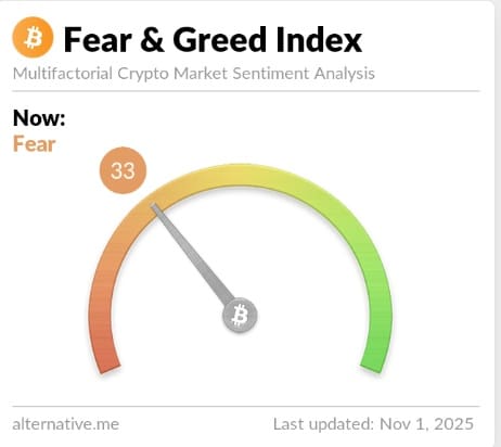 Het crypto-marktsentiment is op dit moment negatief. Zo staat de ‘Fear and Greed Index’ al enige tijd op ‘angst’. De rode cijfers in oktober spelen daar een sleutelrol bij.