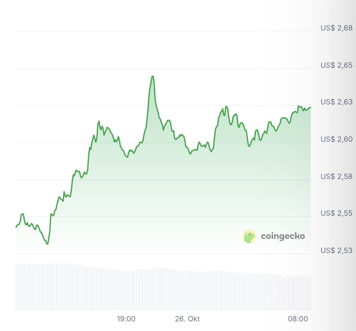 Op het moment van schrijven is XRP 2,65 dollar waard, waarmee de koers zich nog ver onder het belangrijke prijsniveau van 3 dollar bevindt. Er zijn echter hoopvolle signalen die erop wijzen dat XRP binnenkort weer zou kunnen stijgen.