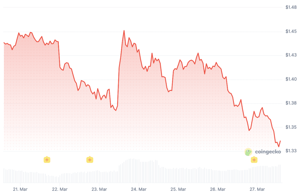 De markt reageerde nauwelijks op het nieuws. XRP staat deze week net als veel andere cryptomunten zo’n vijf procent in de min. In de afgelopen 24 uur daalde de koers van XRP van 1,37 dollar naar 1,34 dollar. Dat is het laagste punt in twee weken.