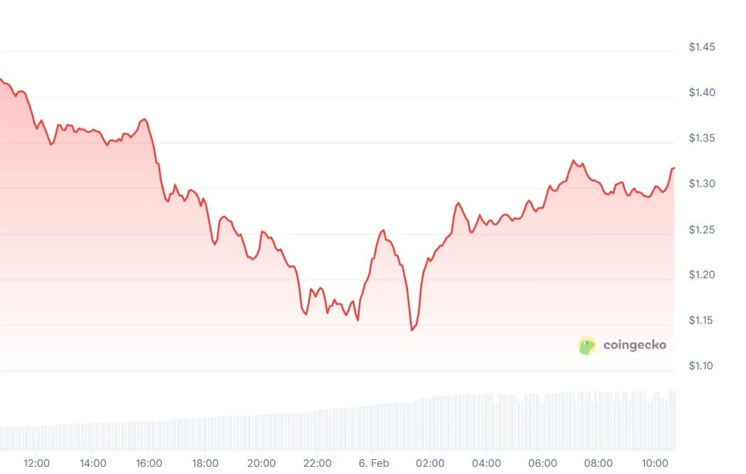 Vanaf de piek van 3,65 dollar in de zomer van 2025 is XRP 64 procent gedaald.