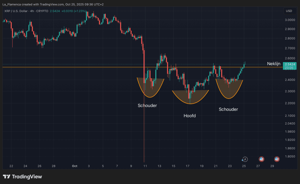 XRP/USD 4-uurs grafiek met omgekeerd hoofd-en-schouderspatroon. Bron: La_Flamenca via TradingView