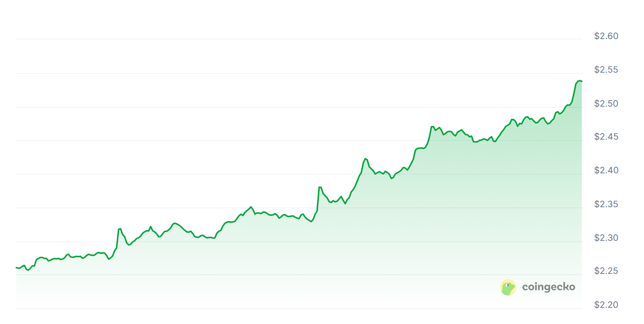 Op het moment van schrijven staat de XRP-prijs al op 2,54 dollar. Daarmee heeft de XRP-koers een stijging van 12,3 procent in 24 uur gerealiseerd.