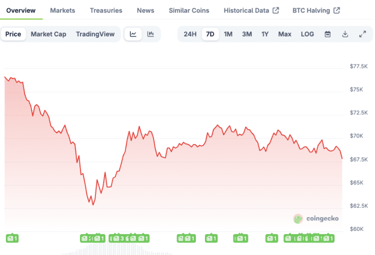 Sinds de piek in oktober rond 126000 dollar kreeg bitcoin het zwaar. Vorige week zakte de koers zelfs terug naar ongeveer 60000 dollar, een daling van zo’n 46 procent. Op het moment van schrijven ligt de prijs rond de 67000 dollar. Zulke schommelingen zorgen er vaak voor dat mensen minder actief handelen.