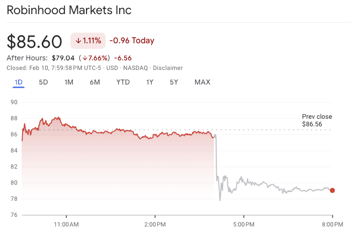 Na het bekendmaken van de cijfers daalde het aandeel van Robinhood in de handel na sluiting van de beurs met bijna 8 procent.